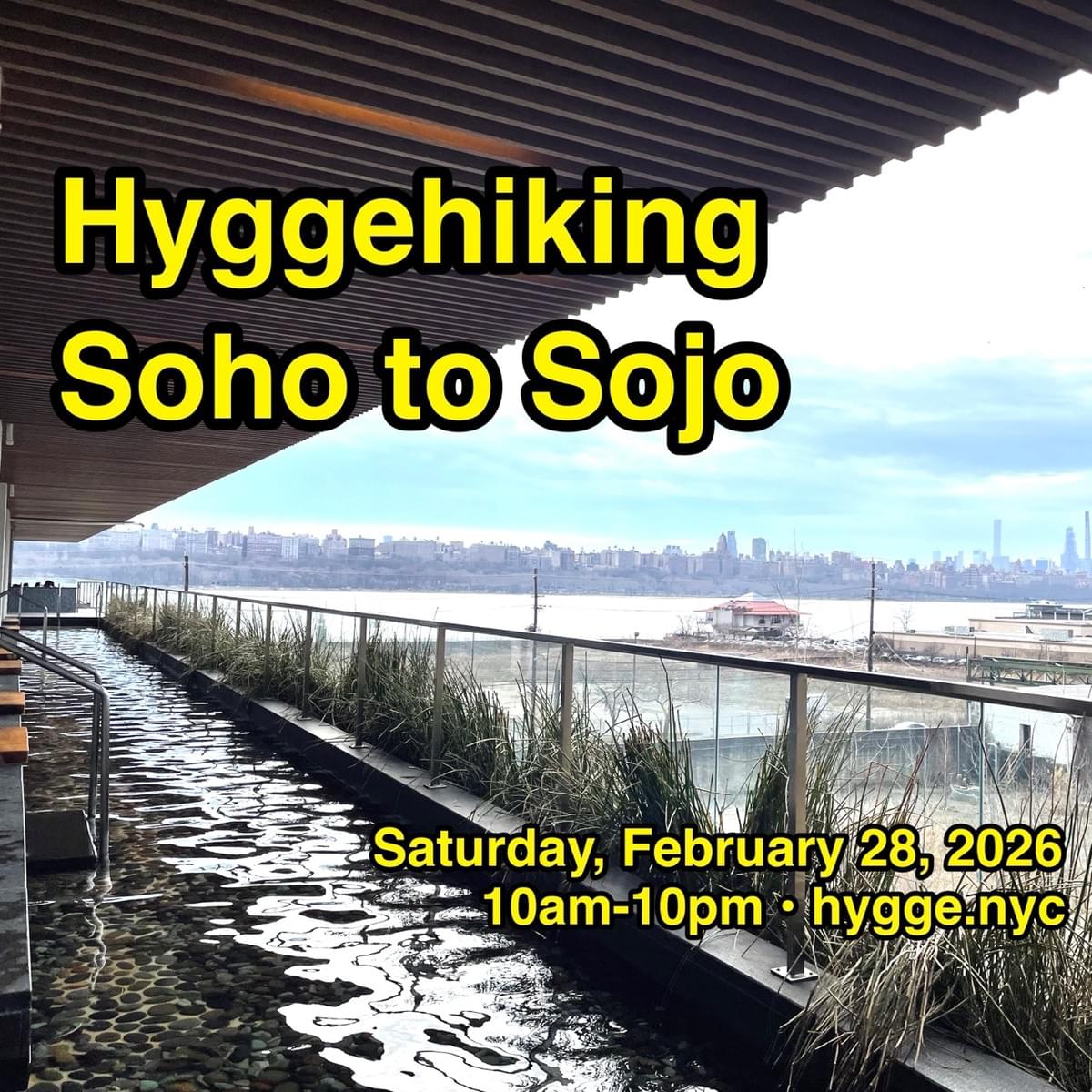 Our final *hiking* stop will be the Edgewater ferry station around 5pm for anyone who wishes to return to Manhattan, at which point anyone remaining is welcome to walk with us over to Sojo spa where we’ll spend the rest of the evening capybara-style, soaking, socializing, and enjoying the twinkling of stars and city lights. As a heads up for would-be spa goers, admission is $130 and it’s advised to buy tickets ahead of time, as they do sell out, particularly on weekends.